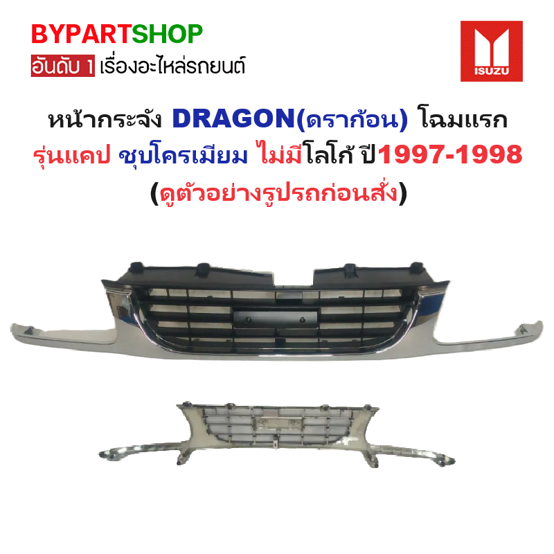 FRONT GRILLE ISUZU TFR/DRAGON EYE, Cab, Chromium Color, Year1997-1998 หน้ากระจัง/กระจังหน้า/หน้ากาก อีซูซุ ทีเอฟอาร์(ดราก้อนอาย) โฉมที่1 รุ่นแคป ชุบโครเมียม ไม่มีโลโก้ ปี2540-2541 ✅ สินค้าเป็นใหม่แกะกล่อง พร้อมติดตั้ง (ไม่มีโลโก้)